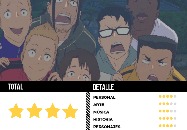 Con un elenco de personajes que me robó el corazón: No solo me sentí identificada con Ouji y sus referencias de spokon, con King y su dura búsqueda laboral, con Nico-chan y su resolución de hacer lo que le gusta pese a no tener el físico para hacerlo, con Yuki y su reconciliación con su familia, con Musa y su extremada calidez como ser humano, con Shindo y su tremenda entrega, con los gemelos y su crecimiento como individualidades, con Kakeru y su nuevamente redescubierto amor, y por supuesto por Haiji, el amor de mi vida. El valor productivo del anime no será el mejor del estudio pero claramente se presenta con una narrativa y una construcción de personajes que destilan humanidad y cuya química como elenco es envidiable. Definitivamente, una recomendación para aquellos que quieren un aire fresco en este género.